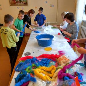 Основам работы с шерстью детей обучала мастер войлоковаляния Лилия Амирова.